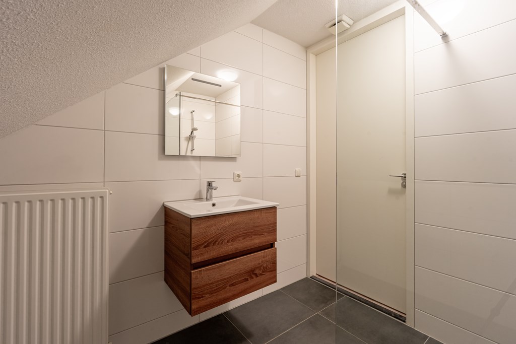 Op deze verdieping vind je drie ruime slaapkamers van circa 15, 10 en 7 m2. Alle slaapkamers zijn voorzien van praktische inbouwkasten. Twee slaapkamers zijn voorzien van een airconditioning. De moderne badkamer heeft een inloopdouche, toilet en wastafel met meubel. Er is tevens een aansluiting voor witgoedapparatuur op de badkamer, maar de huidige bewoners hebben dit op de tweede verdieping geplaatst.