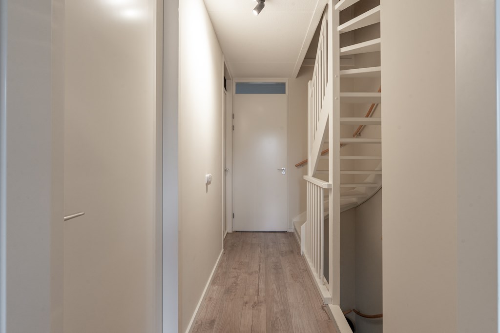 De auto parkeer je voor de deur en via de voortuin bereik je de woning. Je komt binnen in de hal met toegang tot het moderne toilet met fonteintje, trapopgang naar de eerste verdieping en deur naar de woonkamer. Aan de voorzijde van de woning vind je de moderne keuken uit 2021 met diverse inbouwapparatuur. Vanuit de keuken heb je uitzicht over het parkje met speelveld aan de voorzijde van de woning.