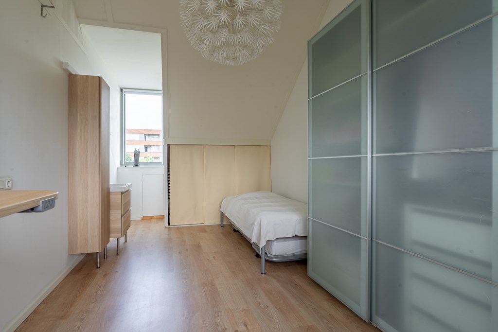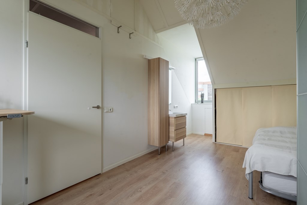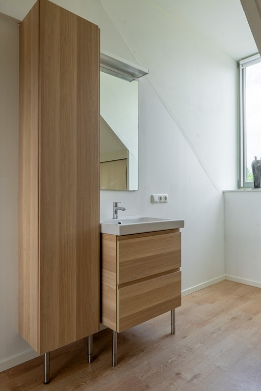 Hier wacht een royale vierde slaapkamer met dakkapellen aan zowel de voor- als achterzijde, waarvan die aan de achterkant is voorzien van elektrische rolluiken. Deze kamer beschikt over een eigen wasbak met bijpassende kast en handige bergruimte achter de knieschotten. Op de overloop is ruimte voor de wasmachine en droger.