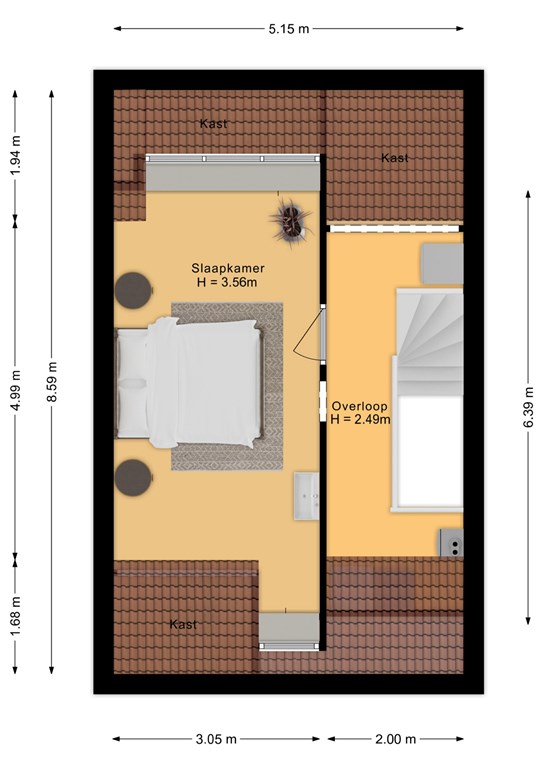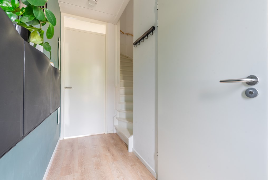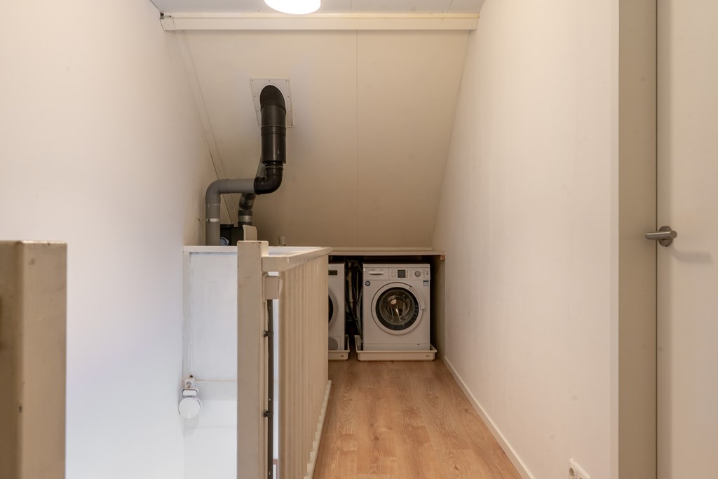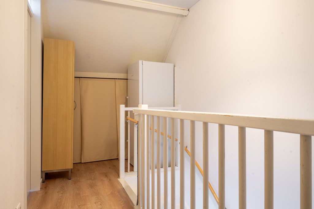 Extra opbergruimte nodig? De praktische vliering bovenin het huis biedt plek voor al je seizoensspullen.