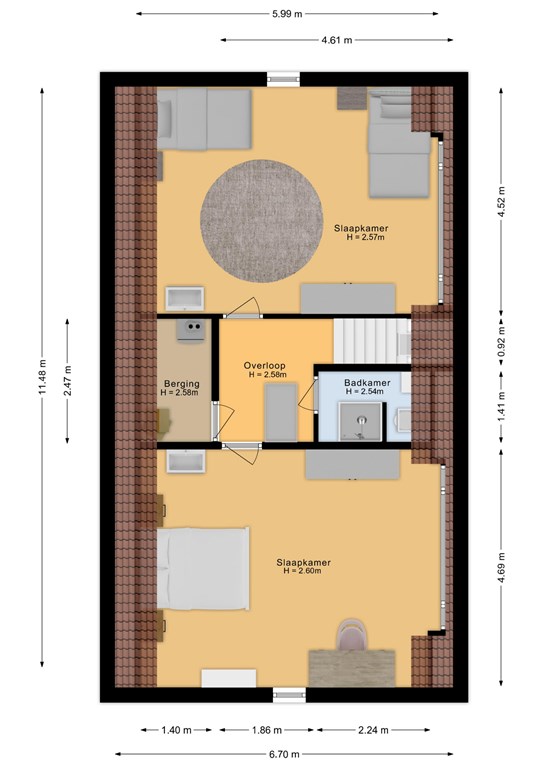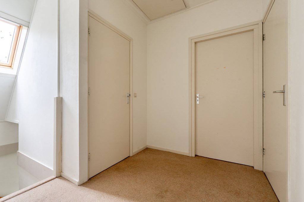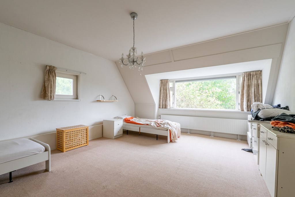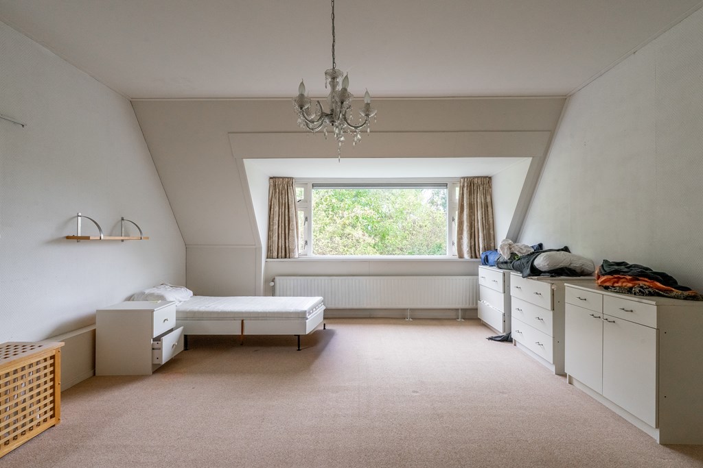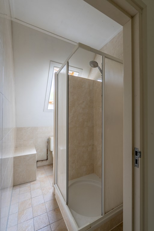 Ruime overloop met cv-ruimte en tweede badkamer voorzien van douche, toilet en wastafel. Verder twee slaapkamers met fraaie nokhoogte en indrukwekkend uitzicht op de omgeving.