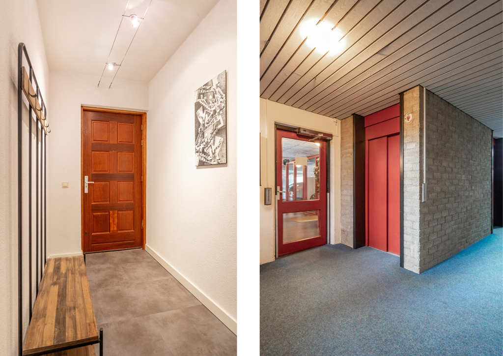 Begane grond: Entree, brievenbussen, bellentableau, trappenhuis, 2 liften, overdekte parkeerplaats