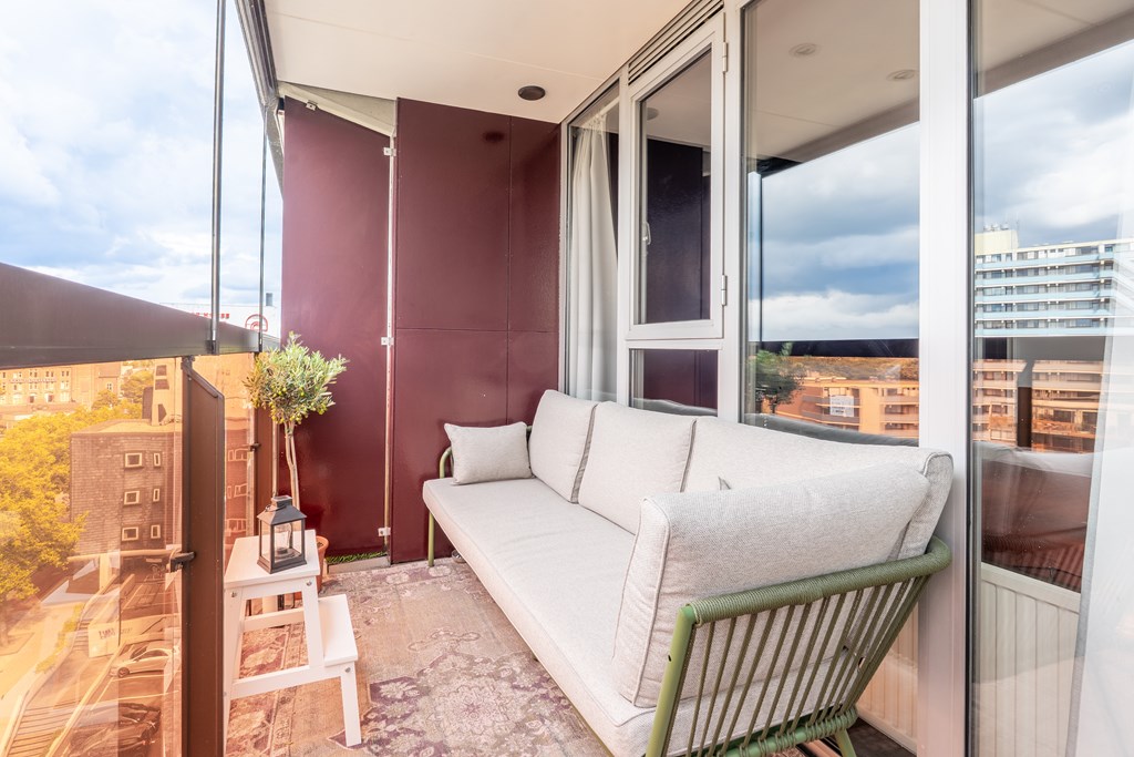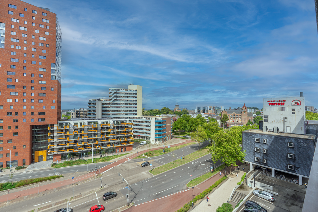 Op de zevende en bovenste verdieping van een goed onderhouden appartementencomplex aan de Burgemeester Hustinxstraat ligt dit lichte en comfortabele appartement. Dankzij de hoekligging beschikt het over extra ramen en dus veel daglicht. Vanaf het balkon kijk je prachtig uit over de stad. Bovendien heb je een eigen overdekte parkeerplaats, een berging in de kelder én woon je op loopafstand van het centraal station en het bruisende stadscentrum.