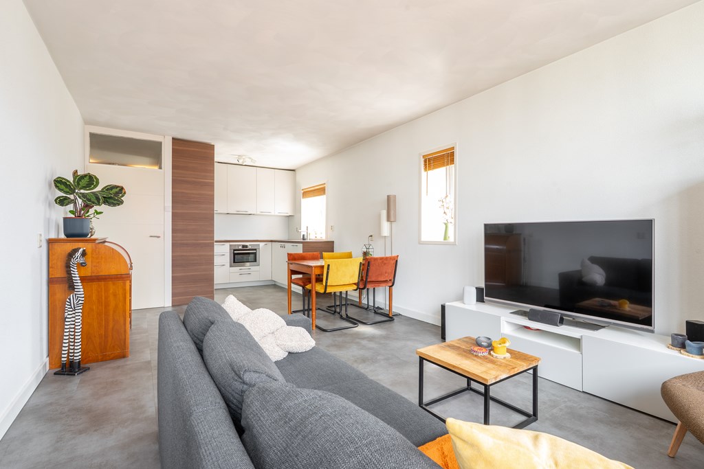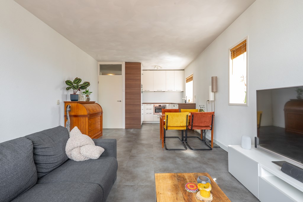 De woonkamer met veel lichtinval en een ruim balkon biedt een prachtig uitzicht op de mooiste plekjes van Nijmegen. Ondanks de ligging op het noorden geniet je ’s ochtends en later op de avond nog van de zon.