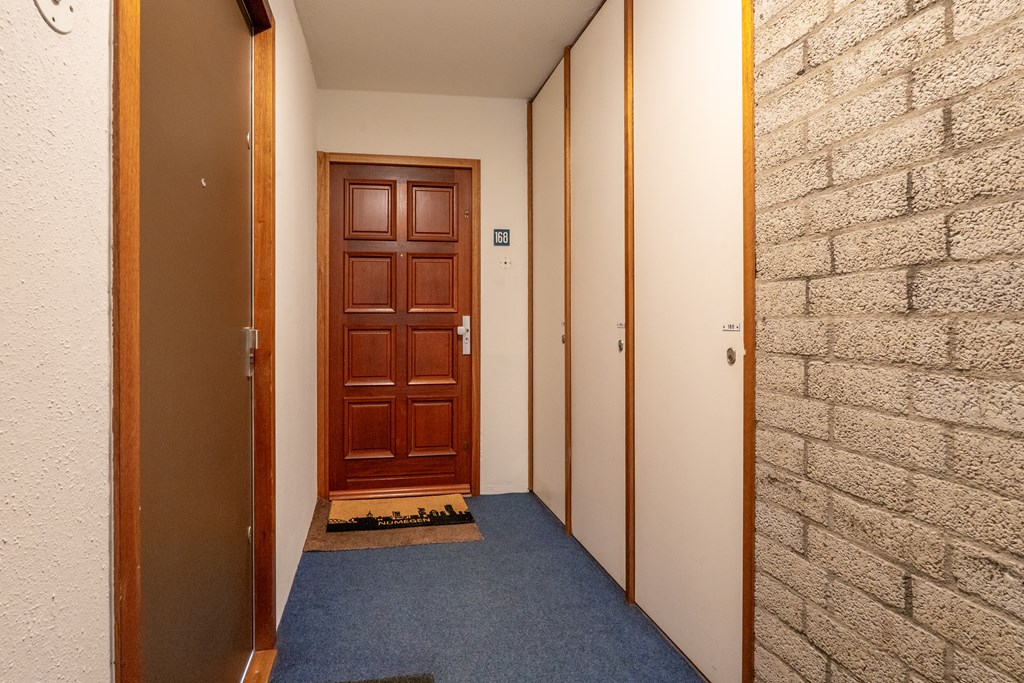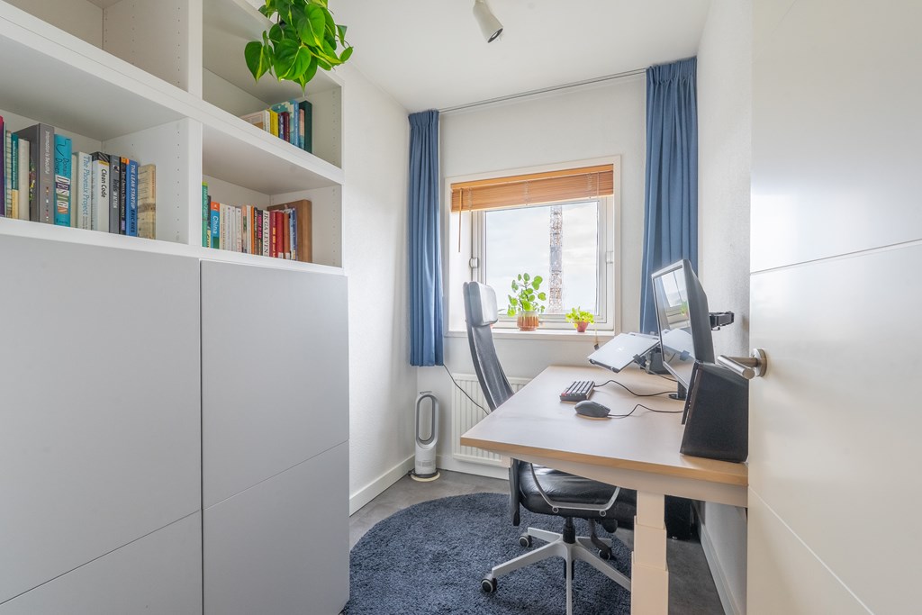 7e verdieping: Entree met voldoende ruimte voor een garderobe, eerste slaapkamer ideaal als kantoor, woonkamer met open keuken (2017), grote slaapkamer met praktische inbouwkasten en badkamer met ligbad, toilet, wastafel en witgoedaansluitingen. Vanuit de woonkamer is er toegang tot het balkon met uitzicht over de stad, door de ligging heb je in de ochtend en later op de avond nog zon.