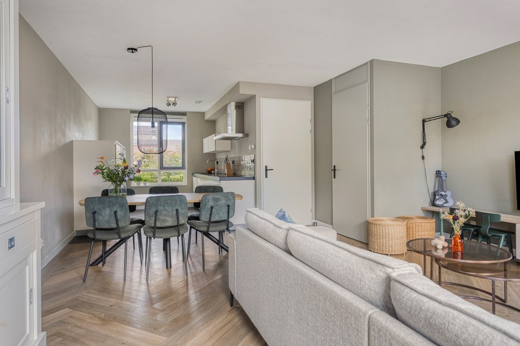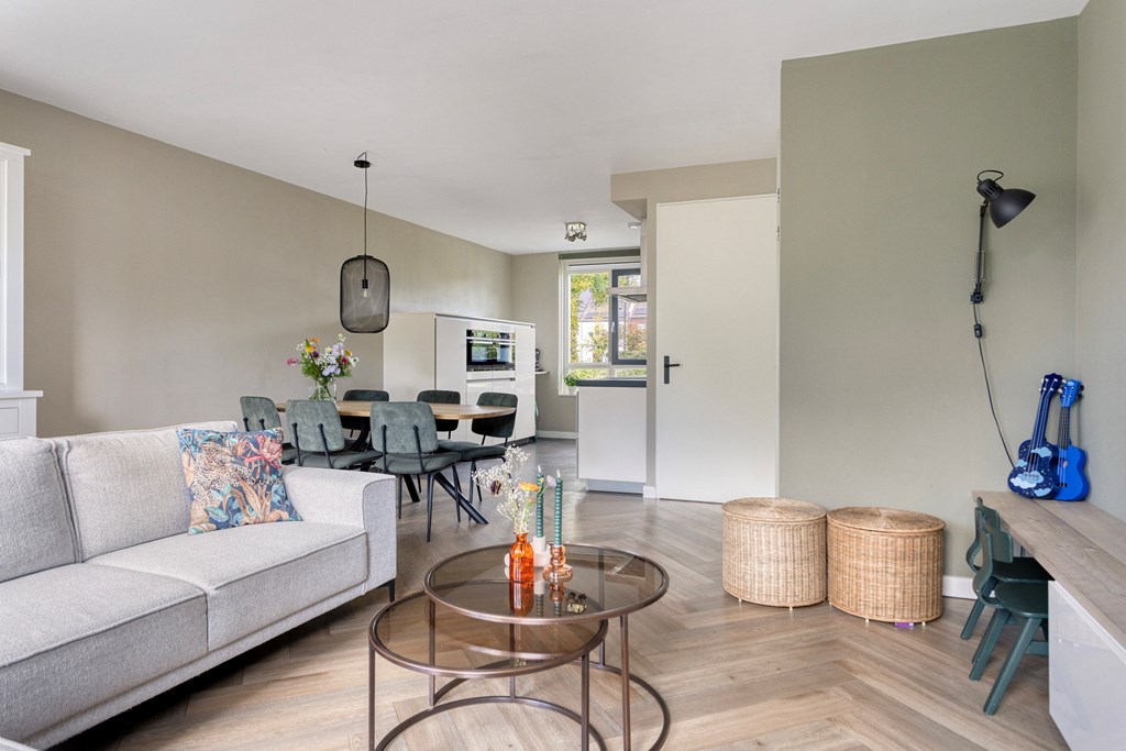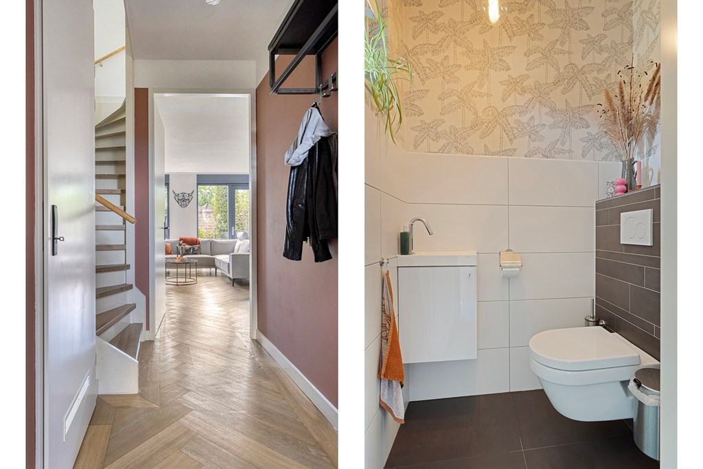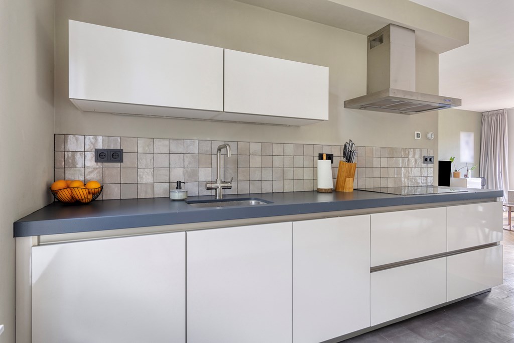 Via de entree met toilet en garderobe bereik je de lichte woonkamer met prettig zicht op de achtertuin. De open keuken aan de voorzijde is modern uitgevoerd en van alle gemakken voorzien. Denk aan een dubbele combi-oven, inductiekookplaat, vaatwasser, een kokend waterkraan én een aparte koelkast en vriezer. Vanuit de ruime woonkamer loop je zo verzorgde, privacyvolle tuin in gelegen op het zuidwesten.
