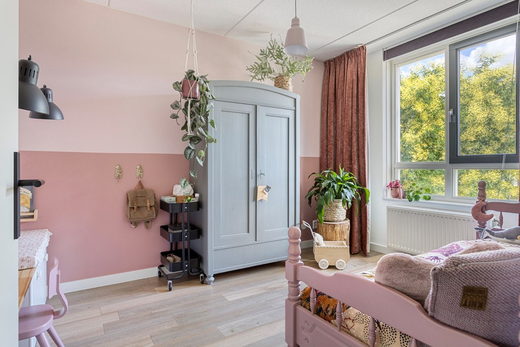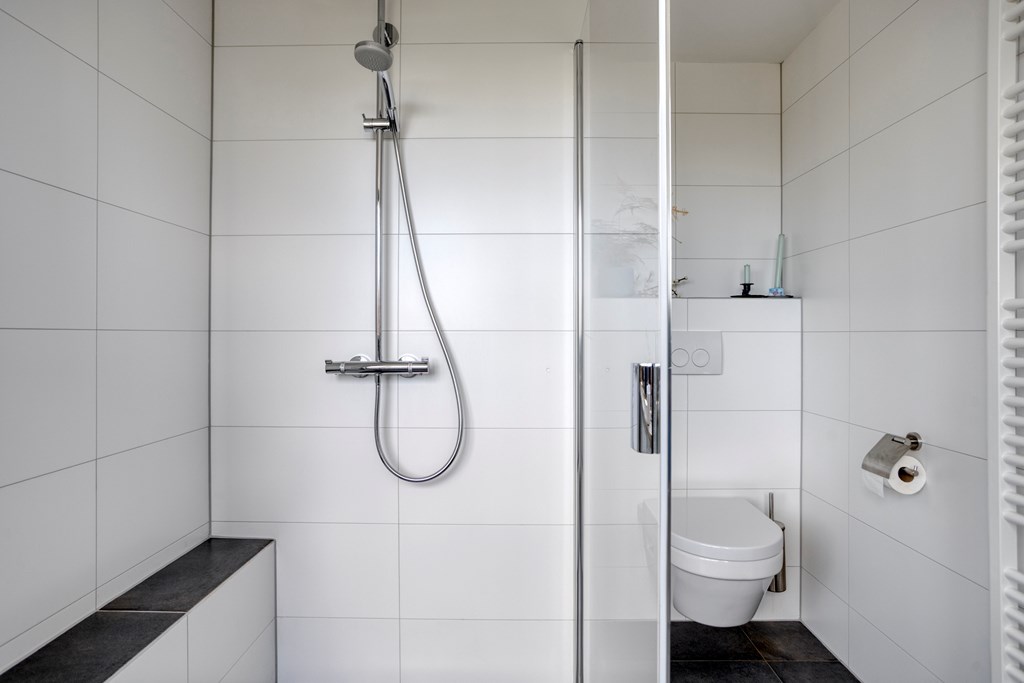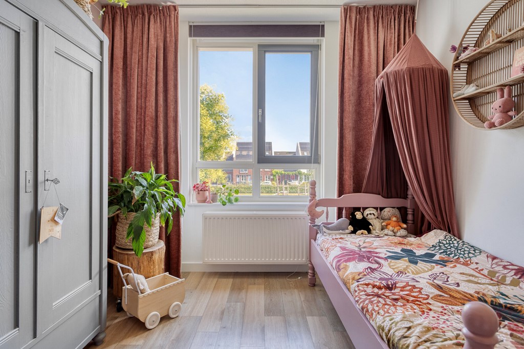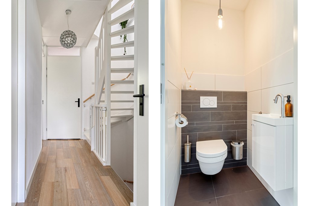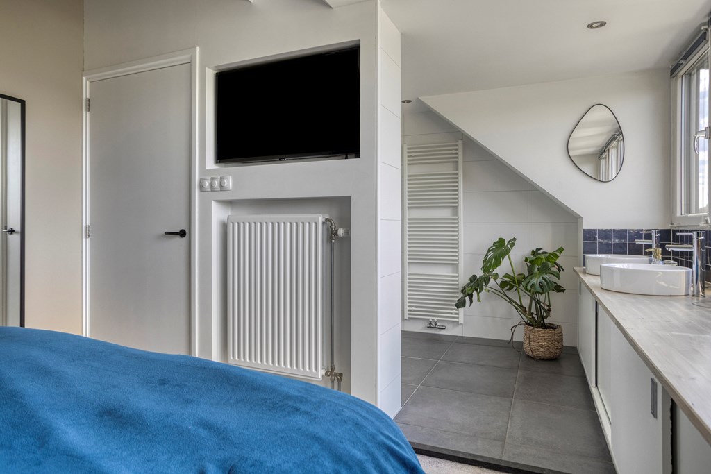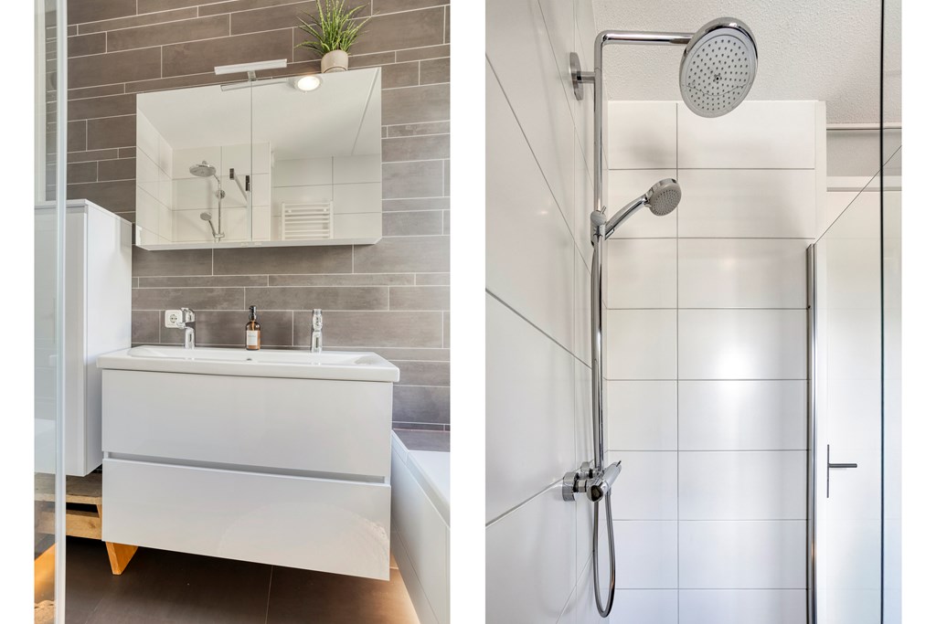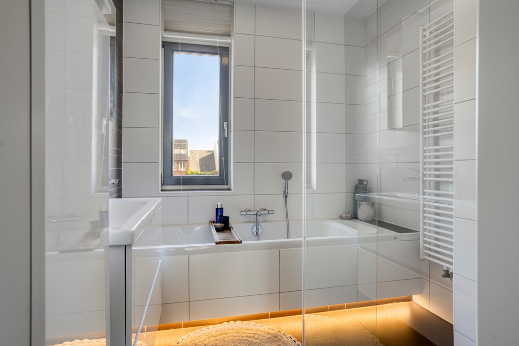Op de eerste verdieping bevinden zich twee royale slaapkamers en een derde, compactere kamer – ideaal als kinderkamer, werkplek of walk-in closet. De slaapkamers aan de achterzijde zijn voorzien van airconditioning voor optimaal comfort tijdens warme dagen. Daarnaast is er een separaat tweede toilet en een moderne badkamer met ligbad voorzien van sfeervolle LED-stripverlichting, inloopdouche en wastafelmeubel.