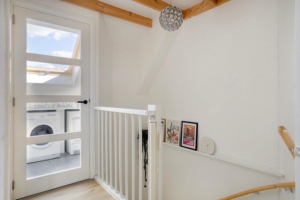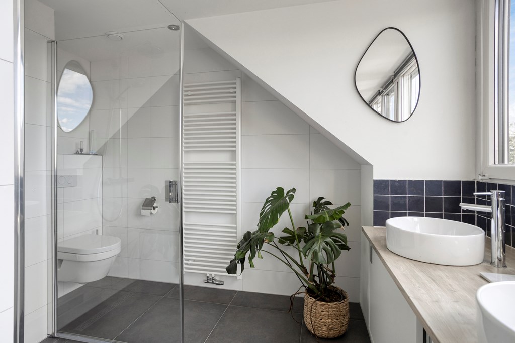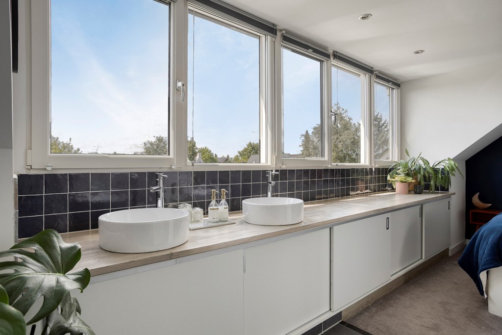 De tweede verdieping telt twee ruime slaapkamers, waarvan de master-bedroom grenst aan een en suite badkamer met inloopdouche, toilet en dubbele wastafel. Tijdens het tandenpoetsen uitzicht op de Nijmeegse Skyline. Er is extra bergruimte netjes weggewerkt achter knieschotten en op de handige vliering.