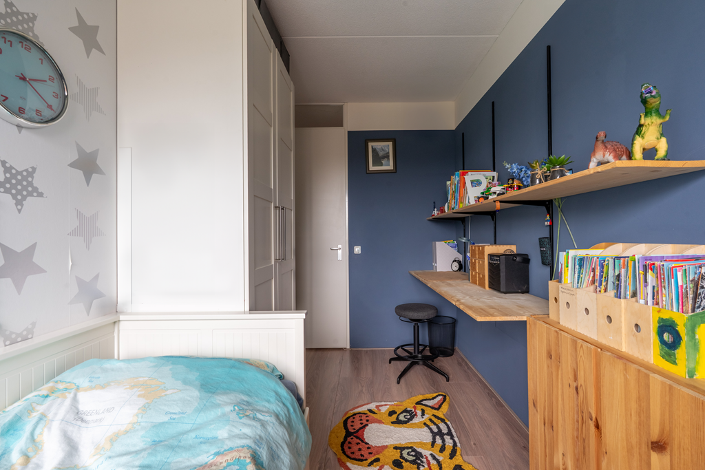 Op deze verdieping vind je drie slaapkamers en een moderne badkamer. De slaapkamers zijn circa 18, 11 en 9 m2 en voorzien van een nette laminaatvloer. De badkamer (2014) is modern ingericht met een inloopdouche, toilet en dubbele wastafel met meubel. De kamers zijn voorzien van rolluiken.