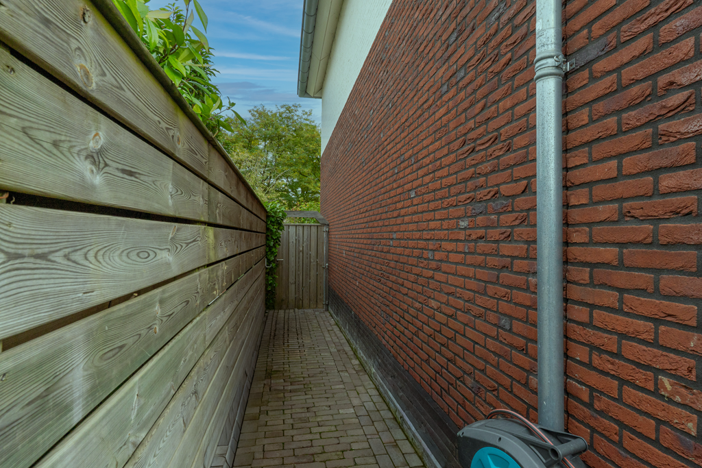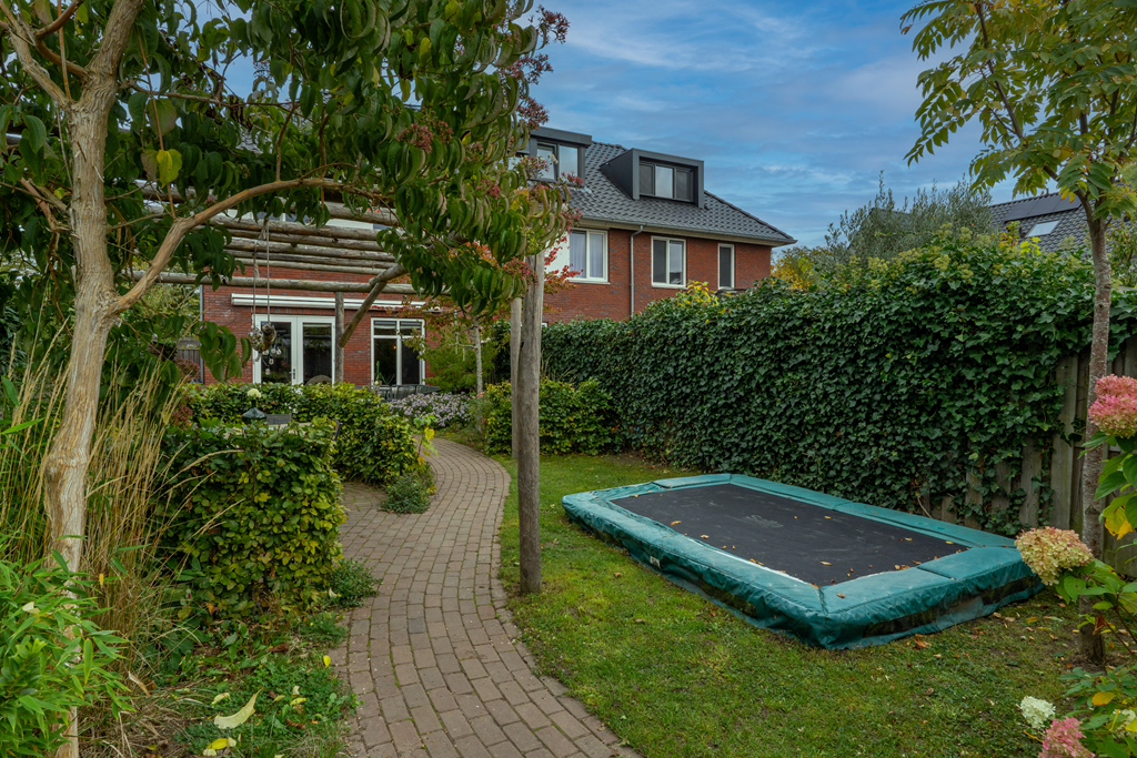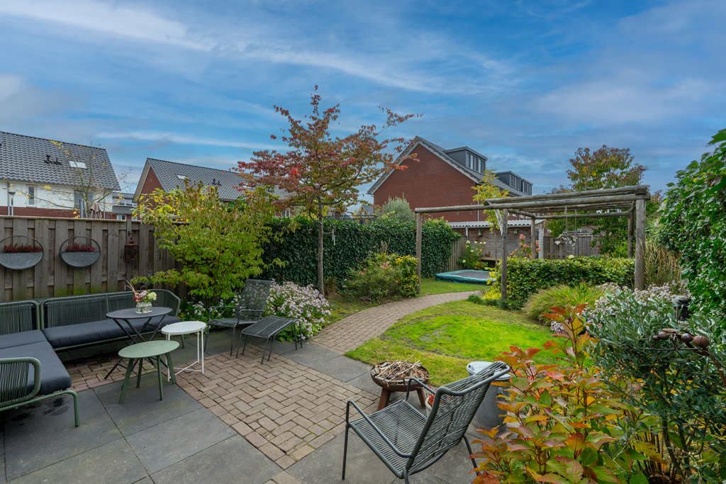 De achtertuin van deze woning is uniek, 20 meter diep met meerdere terrassen en twee poorten. Er zijn de gehele dag zon- of schaduwplekjes te vinden. In de achtertuin is een vrijstaande houten berging met elektra.