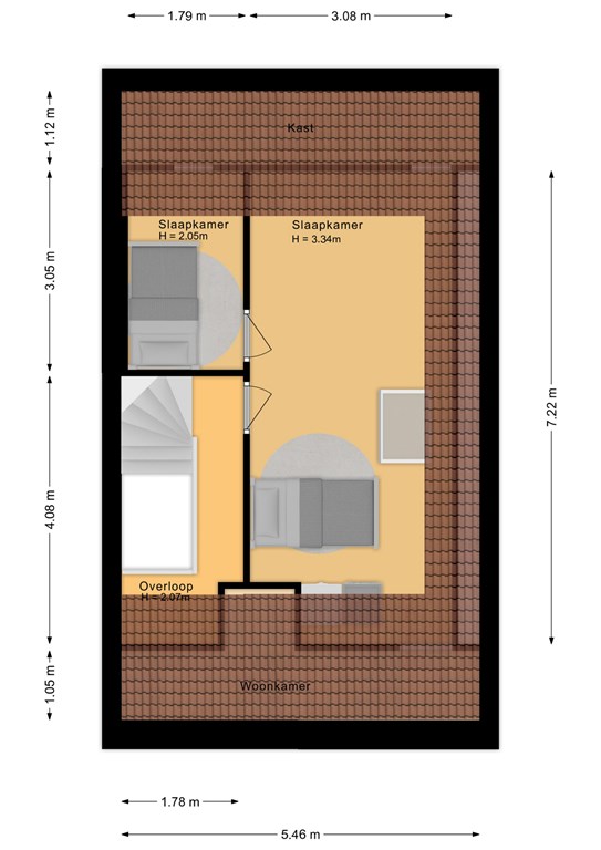 Deze verdieping biedt nog veel extra ruimte. Momenteel is de verdieping ingericht als een grote kamer met vide en tweede hobby kamer. Vanwege het dakraam heb je daglicht en natuurlijke ventilatie. De verdieping is nog vrij in te delen naar eigen wens.