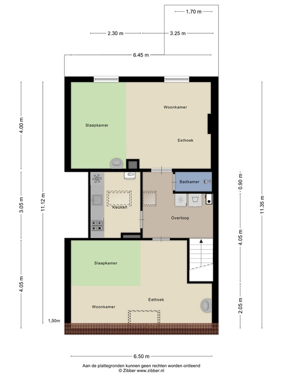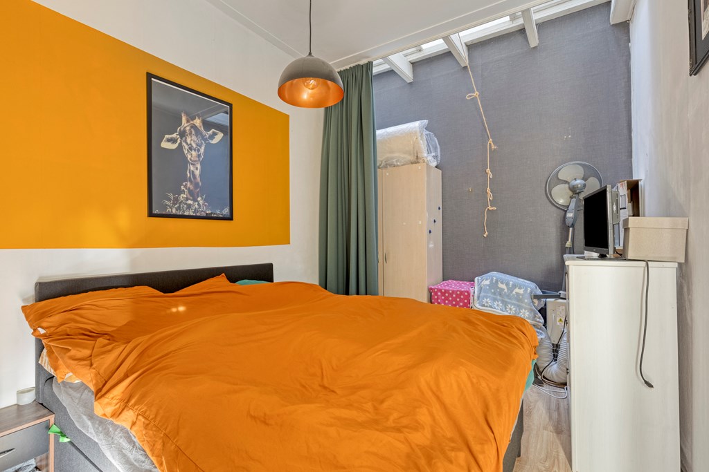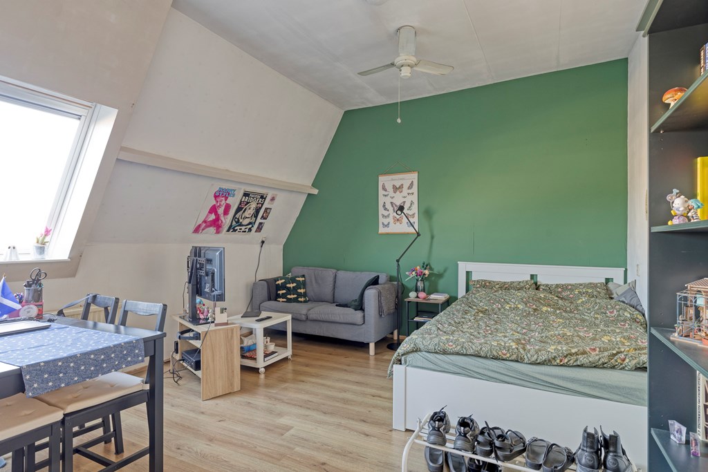 Via de trapopgang bereik je de eerste verdieping van het pand. Op deze verdieping zijn er 2 units met een gemeenschappelijk toilet. Aan de voorzijde van het pand vind je een studio met eigen keuken. Aan de achterzijde zit een grotere unit met separate slaapkamers en dakterras.