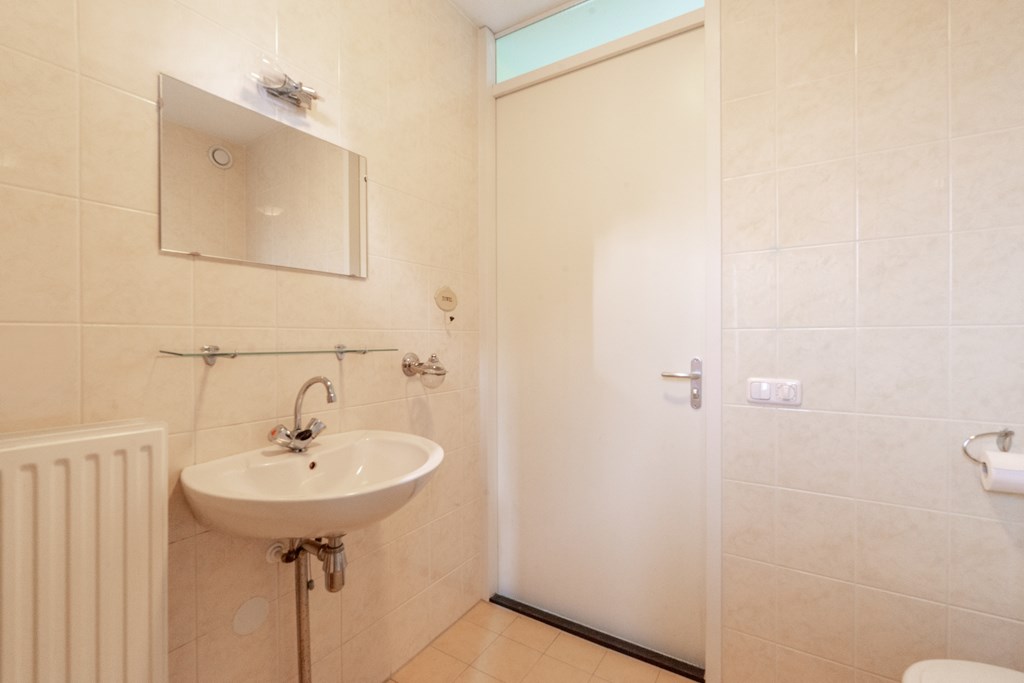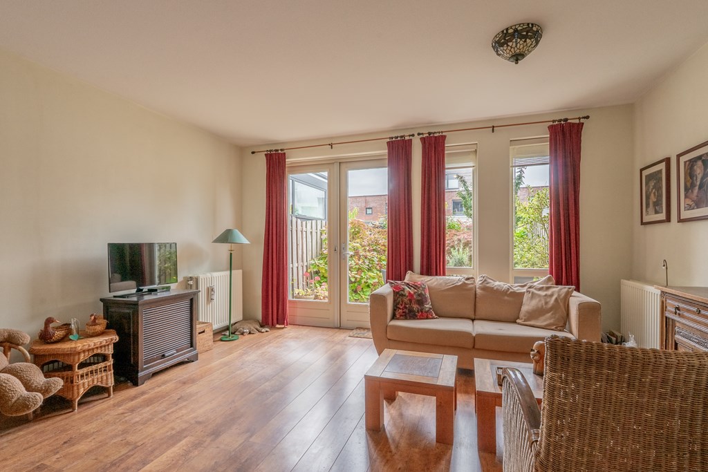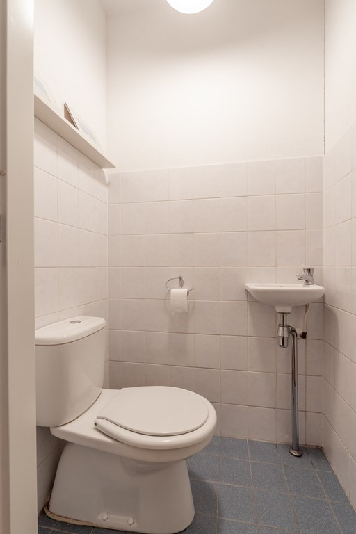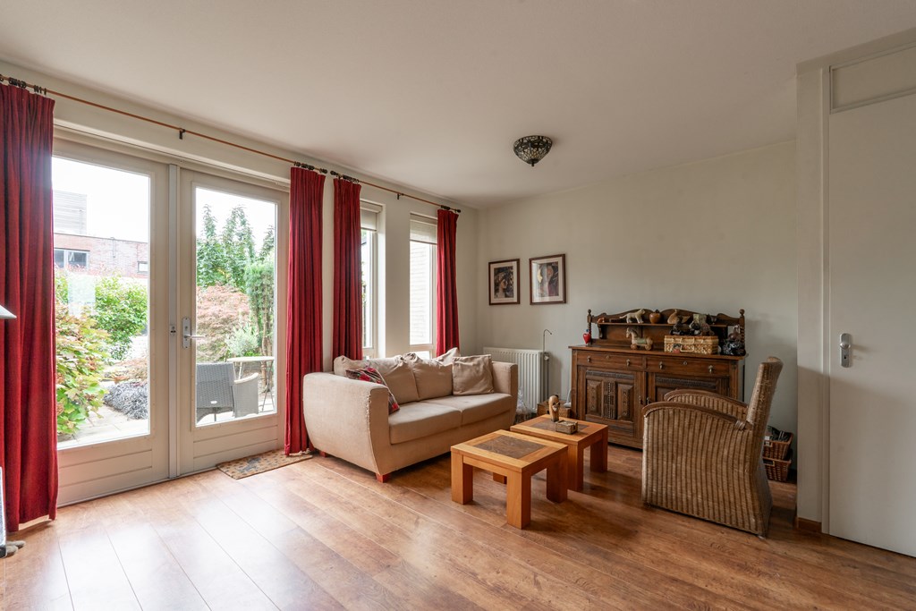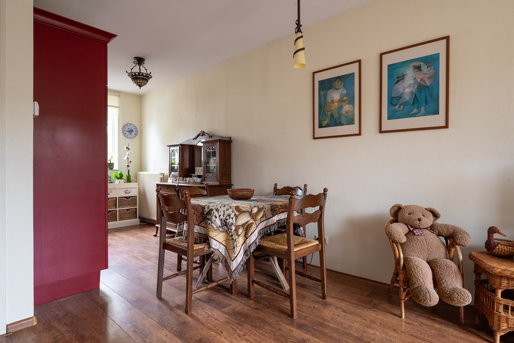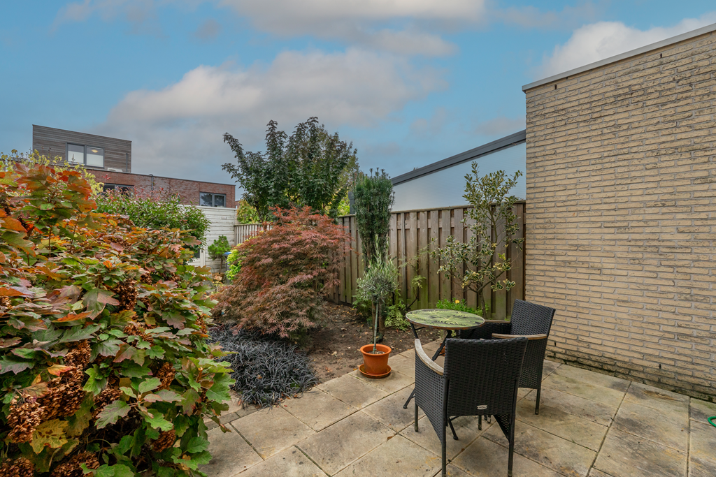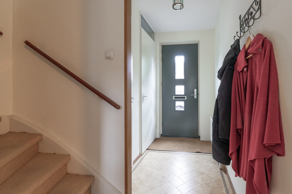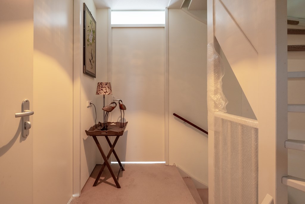De woning heeft een praktische indeling. Bij binnenkomst is er een hal met toilet en meterkast. Vanuit de hal stap je in de lichte woonkamer met een open keuken aan de voorzijde. De woonkamer biedt ruimte voor zowel een zithoek als een eettafel, met openslaande deuren naar de achtertuin. Een trapkast zorgt voor extra bergruimte.