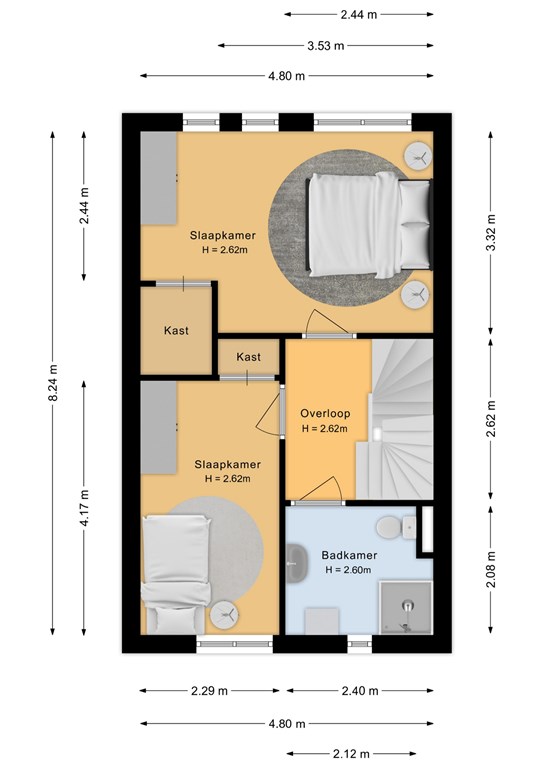 De tweede verdieping is slim ingedeeld met een derde slaapkamer, een aparte wasruimte en een overloop. Aan de achterzijde bevindt zich een ruim dakterras. Hier is ook nog een mogelijkheid tot opbouwen waardoor er een extra slaapkamer gecreëerd kan worden.