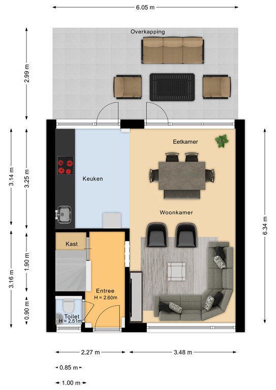B Moderne tussenwoning met 3 slaapkamers, grote overkapping en zonnige achtertuin te koop!