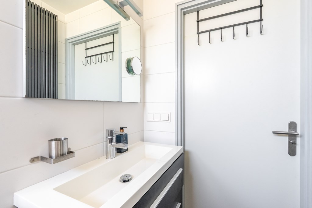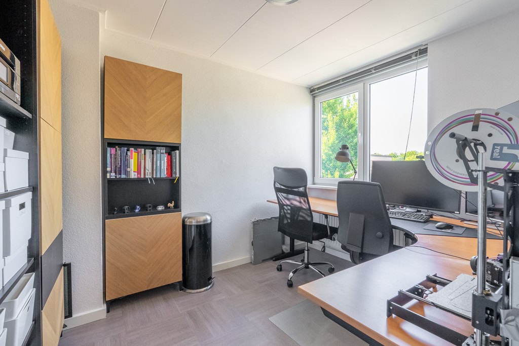 Op deze verdieping zijn er 3 slaapkamers van circa 11, 8 en 8 m2. Voldoende ruimte voor een grote slaapkamer, tweede slaapkamer en eventueel een thuiskantoor. De grote slaapkamer beschikt over een airco. Verder is er een fijne badkamer met bad-douche combinatie, toilet en wastafel met meubel. De witgoedaansluitingen zijn in een aparte ruimte te vinden.