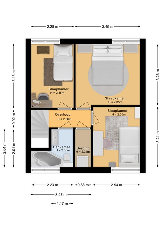 * 3 slaapkamers