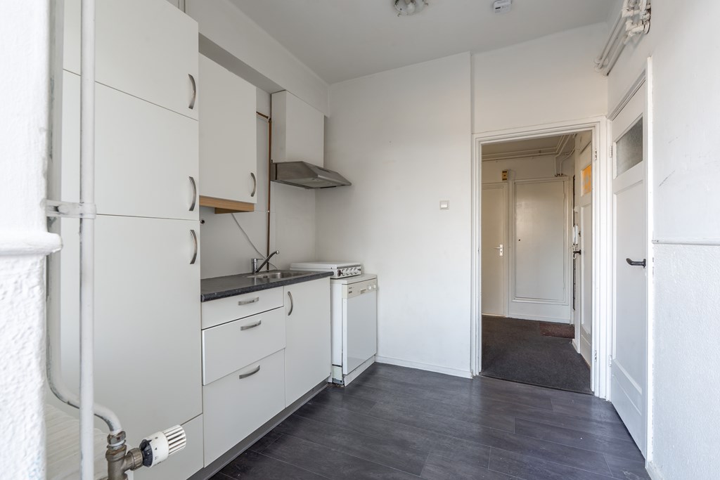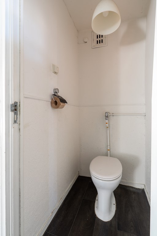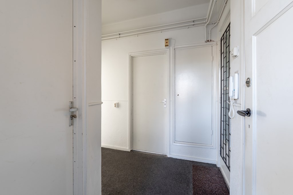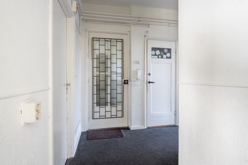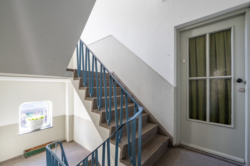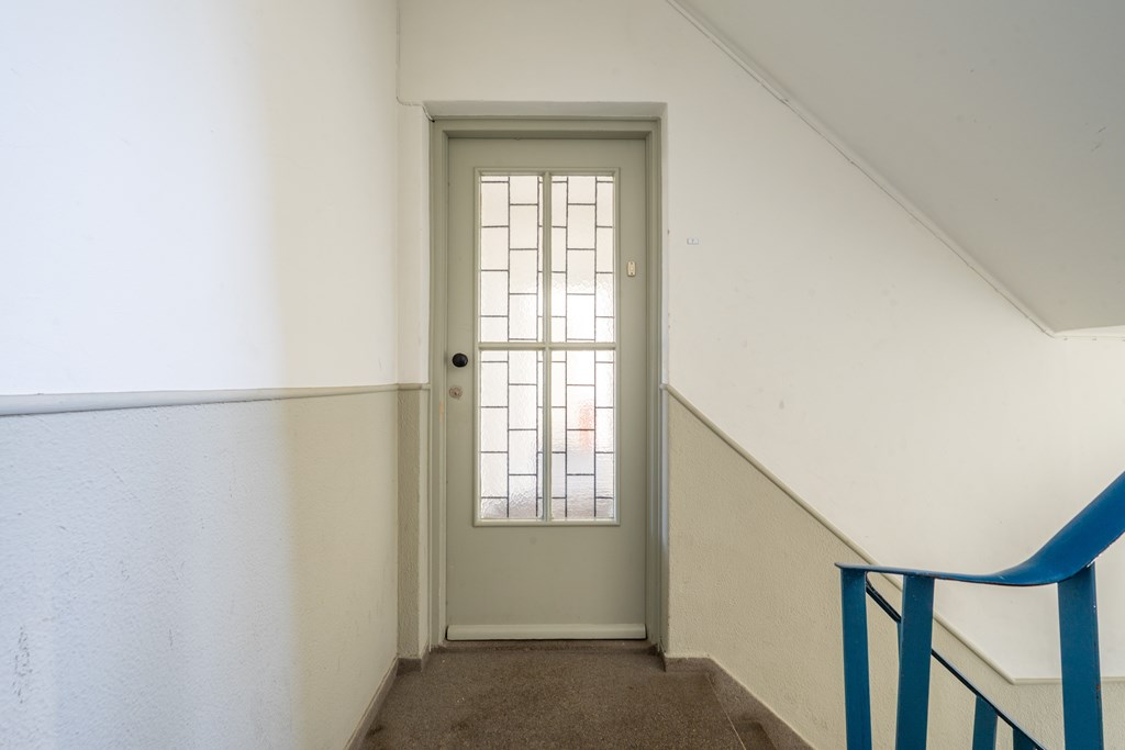 Via de algemene trapopgang bereik je de voordeur van het appartement. Via de hal heb je toegang tot de verschillende ruimtes: een ruime woonkamer, 2 slaapkamers, separaat toilet, gelosten keuken en badkamer. Vanuit de grote slaapkamer en keuken heb je toegang tot het ruime en zonnige dakterras.