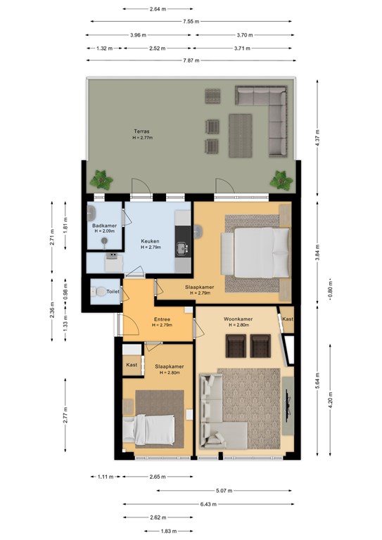 * 66 m2 woonoppervlakte