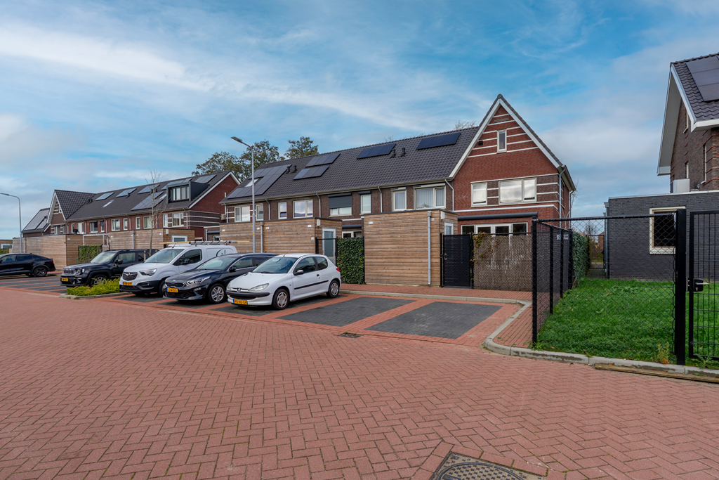 Door de ligging op de hoek heb je een voor-, zij- en achtertuin. Daardoor heb je een achterom vanaf de algemene parkeerplaats, maar ook een achterom op eigen perceel. De achtertuin is gelegen op het zuid-oosten en daardoor de gehele dag veel zon. De huidige eigenaren hebben een elektrisch zonnescherm geplaatst voor de warme dagen. Daarnaast is er nog een vrijstaande houten berging voor opslag.