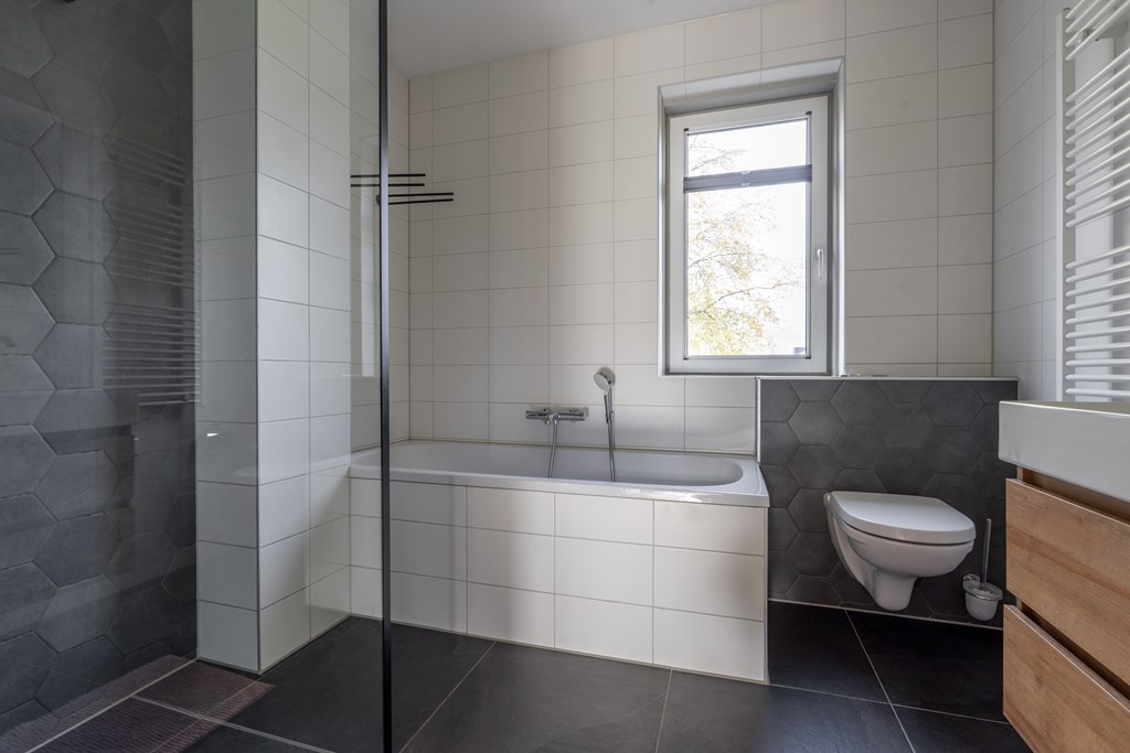 Op deze verdieping zijn er 3 fijne slaapkamers met een badkamer voorzien van inloopdouche, ligbad, dubbele wastafel met meubel en toilet. Ook deze verdieping is volledig voorzien van vloerverwarming. Er is veel daglicht vanwege de grote ramen en de ligging op de hoek.