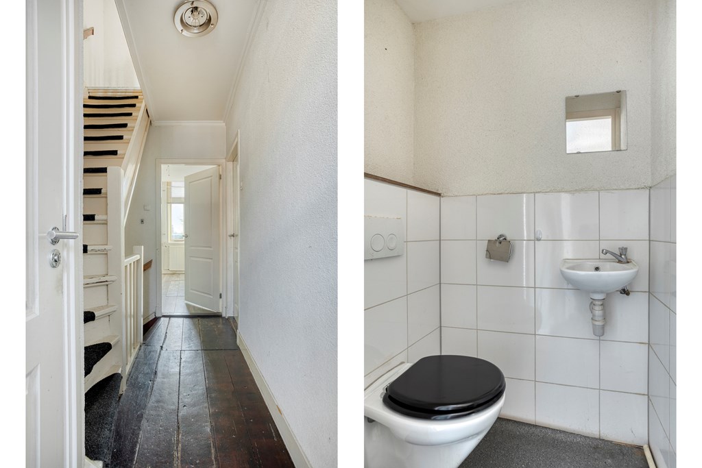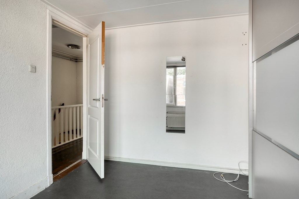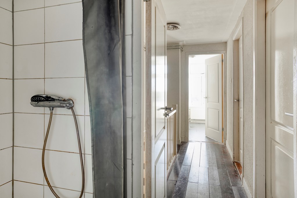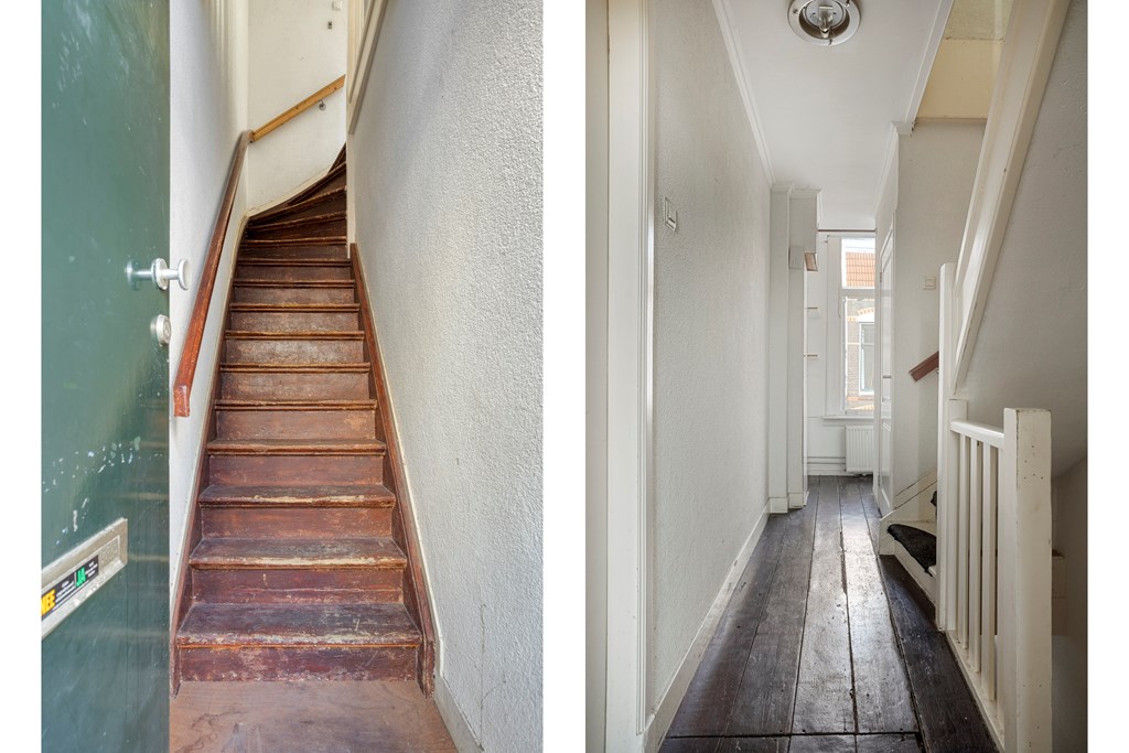 Via de sfeervolle en gezamenlijke portiek komt u binnen in de entree die toegang geeft tot deze woning. Hier vind je een luik naar de kelderruimte van ongeveer 5m2.