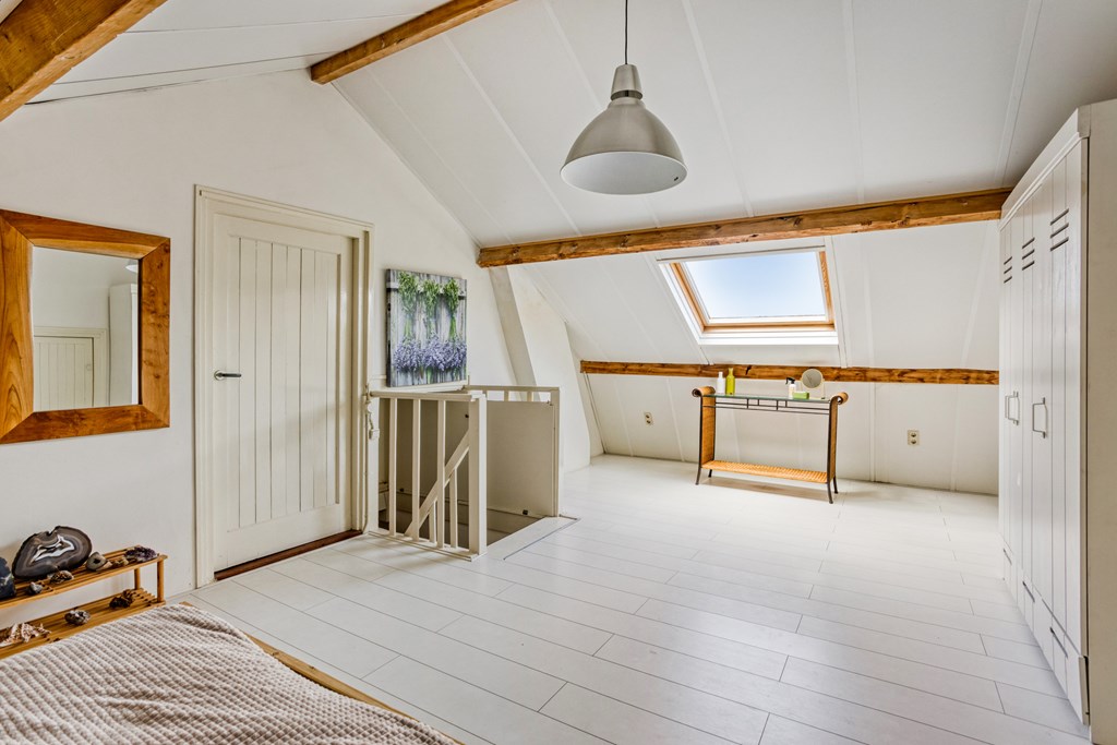 Deze sfeervolle en ruime verdieping is momenteel in gebruik als grote slaapkamer met een extra kamer en grote bergruimte. Met kleine aanpassingen kunnen er hier meerdere slaapkamers gerealiseerd worden. Het dak is geïsoleerd en er zijn verschillende dakramen voor daglicht en ventilatie.