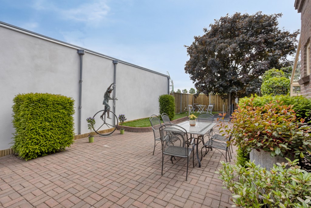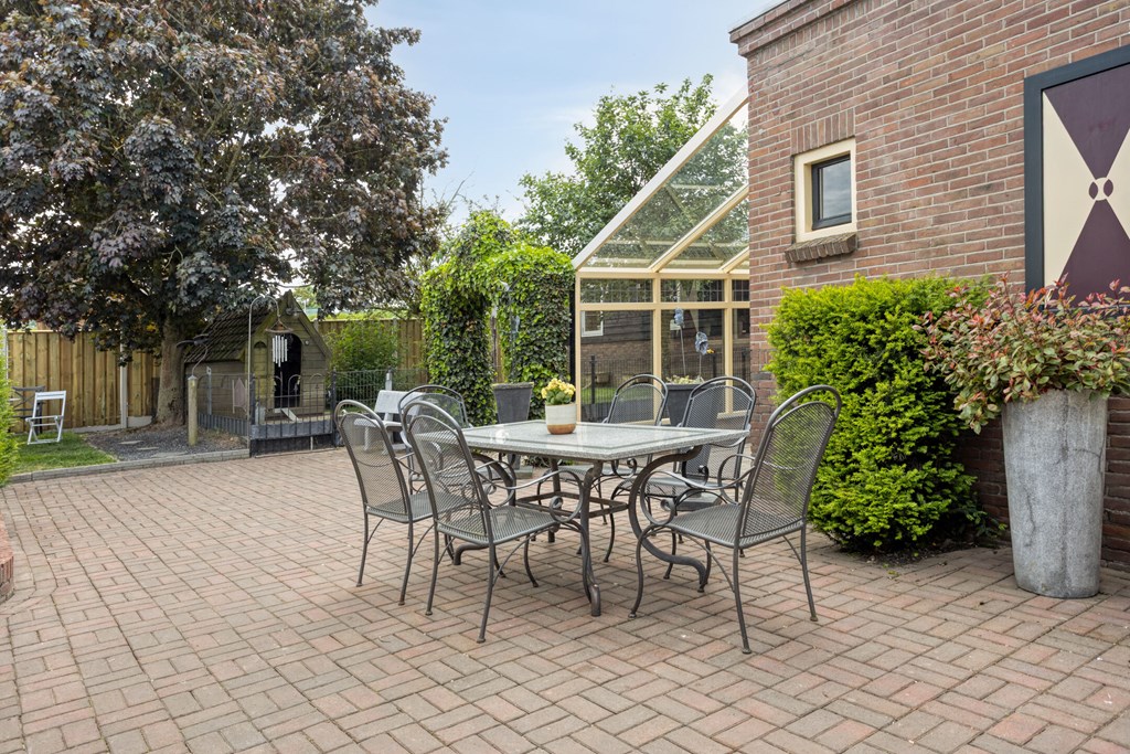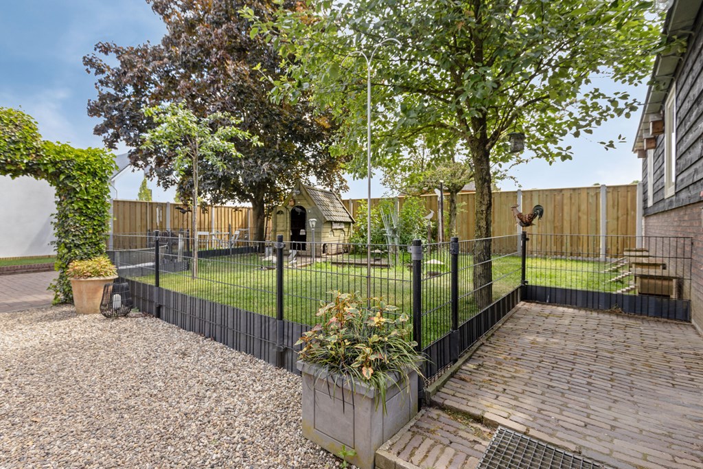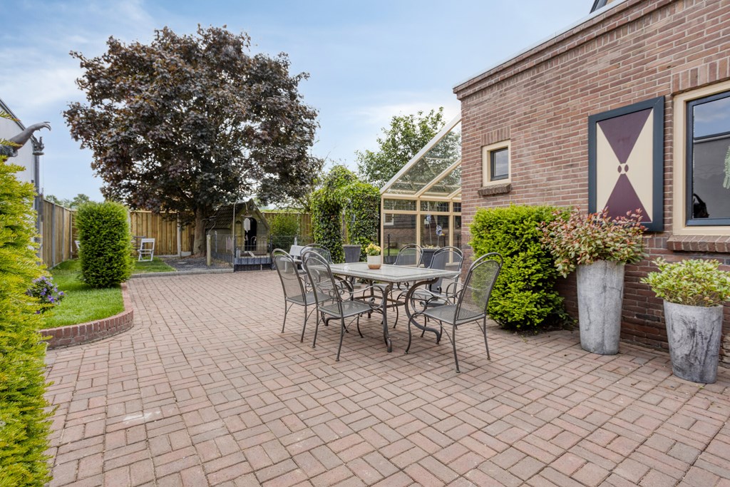 Op het ruime perceel van 503 m2 vind je voor alle liefhebbers een fijn plekje. Er is een serre om lekker lang buiten te kunnen zitten, een bijgebouw voor diverse hobby's, verschillende hoekjes om in de zon te zitten, meerdere terrassen voor een grote tafel of lounge en daarnaast nog een grote ruimte voor dieren. Aan de zijkant van de woning is een oprit met plek voor twee auto's.