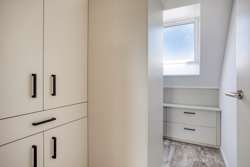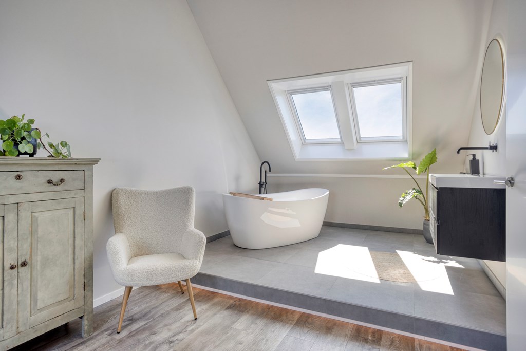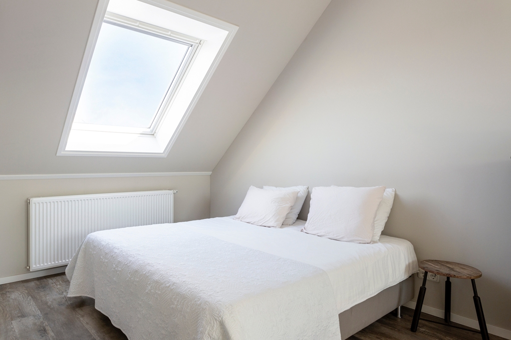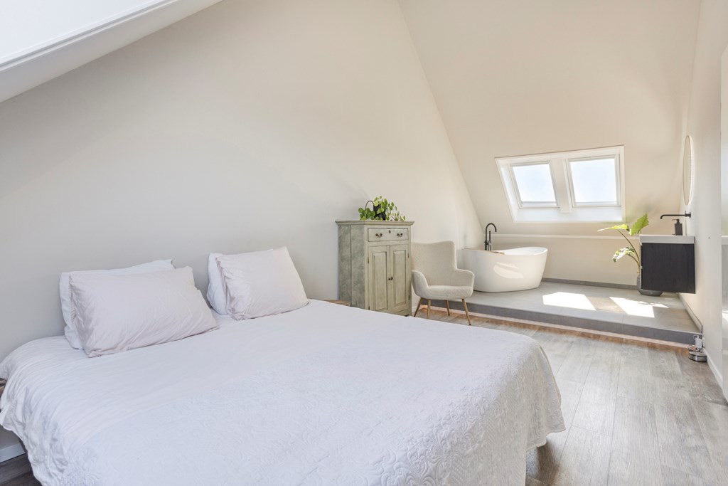 Deze verdieping is de eye catcher van deze woning. De slaapkamer met badkamer en suite is erg ruim en sfeervol ingericht. Door de dakramen aan beide zijden heb je veel daglicht. Daarnaast vind je op deze verdieping een tweede slaapkamer en wasruimte op de overloop. Tot slot is er via een vlizotrap toegang tot een praktische vliering, ideaal voor extra bergruimte.