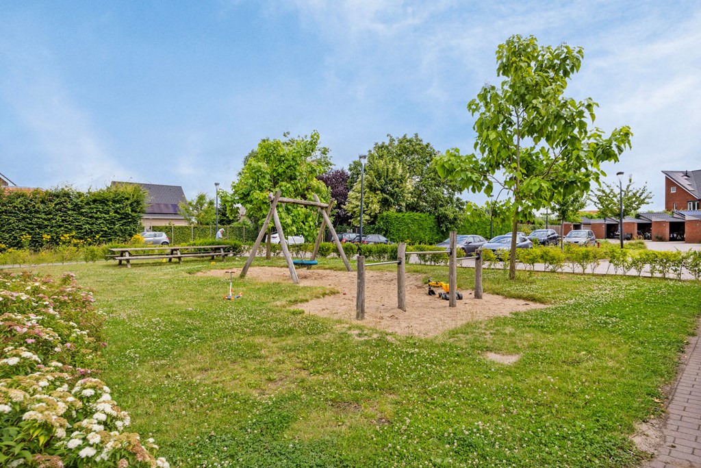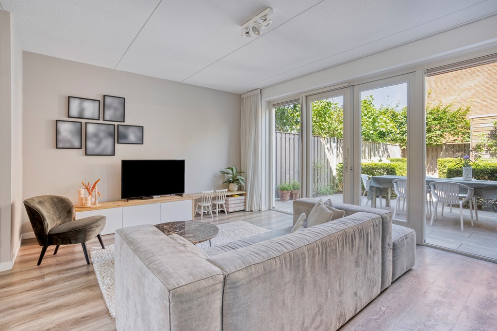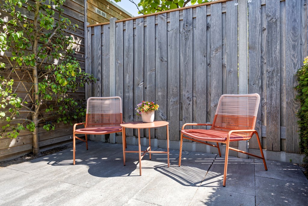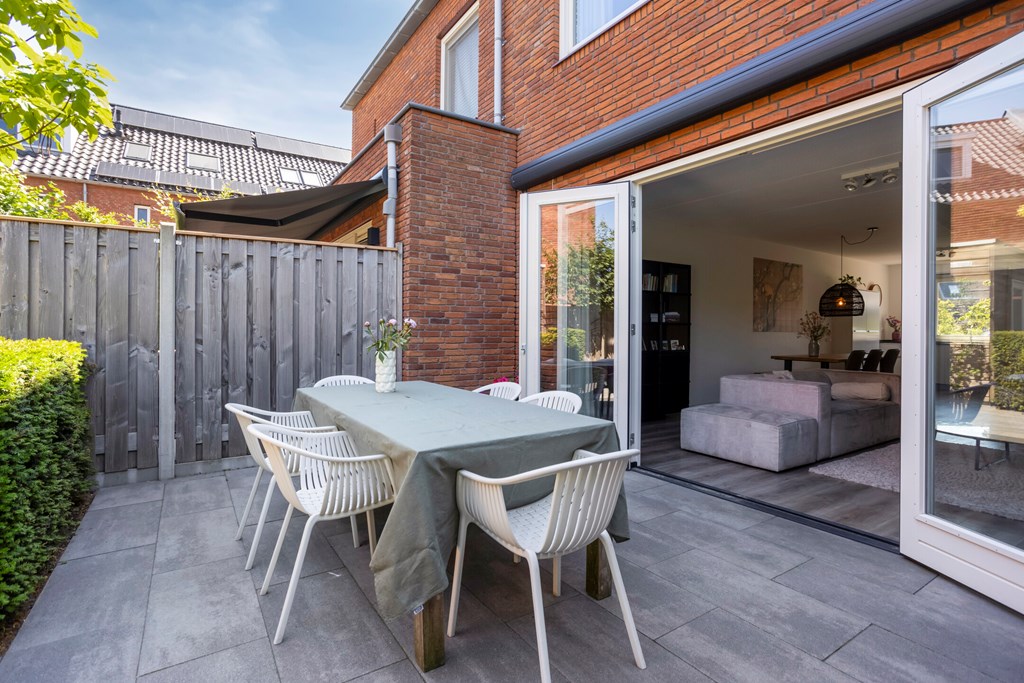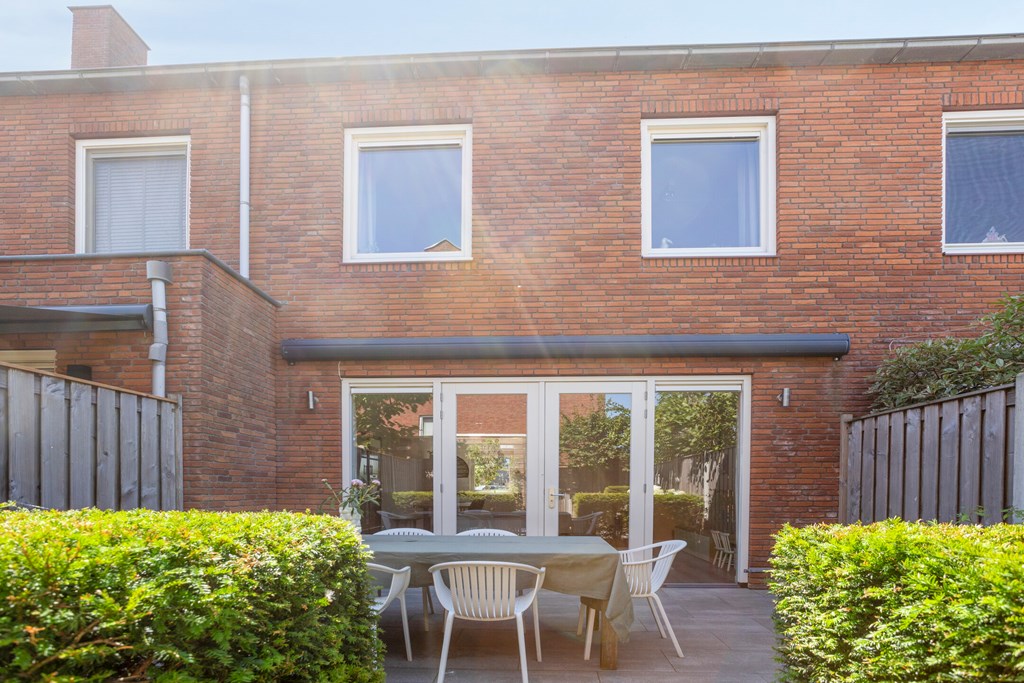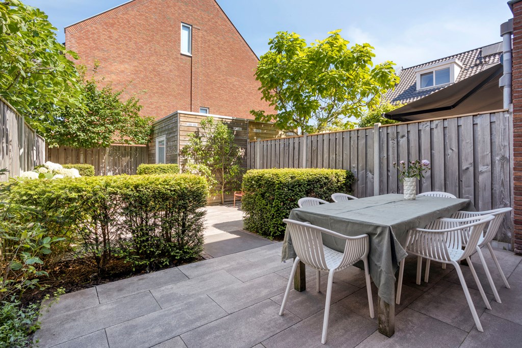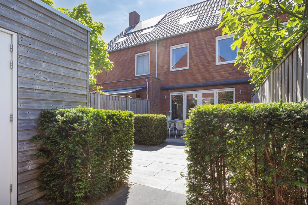 De achtertuin is ideaal gelegen op het noord-westen waardoor je de gehele dag kunt kiezen voor een zon- of schaduwplekje. Er is een zonnescherm aanwezig om de zon op de warme zomerdagen buiten te houden. Verder is er een vrijstaande houten berging en achterom.