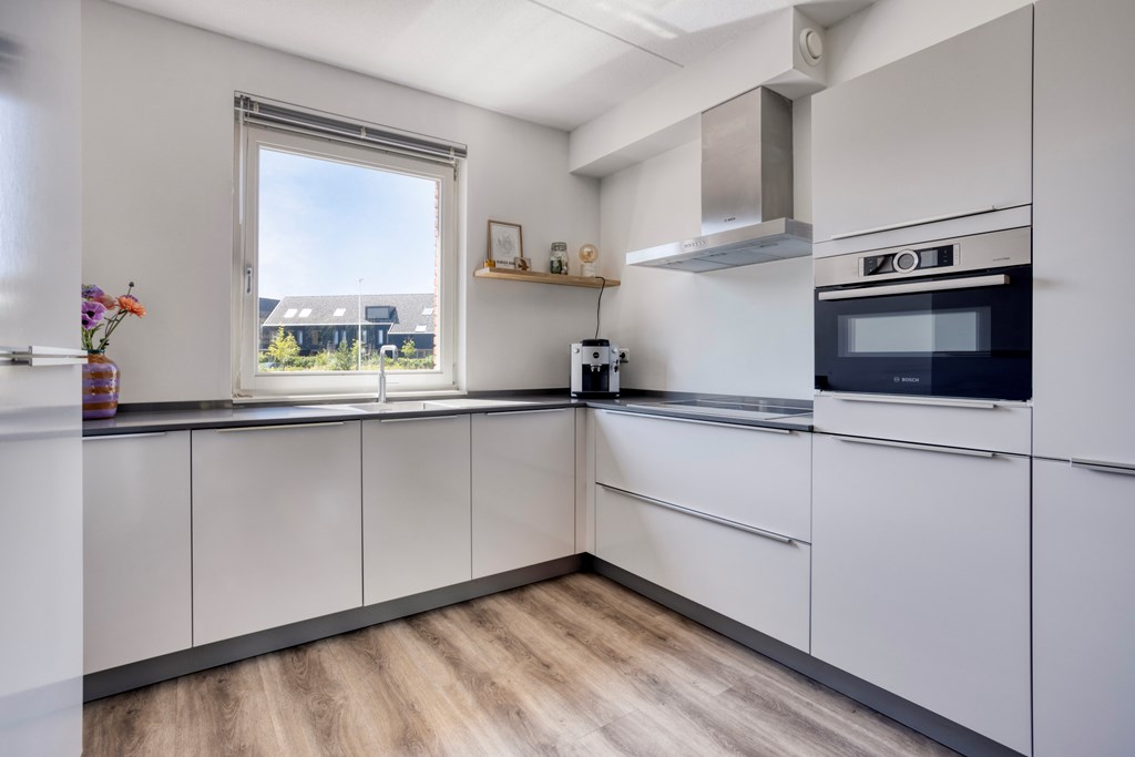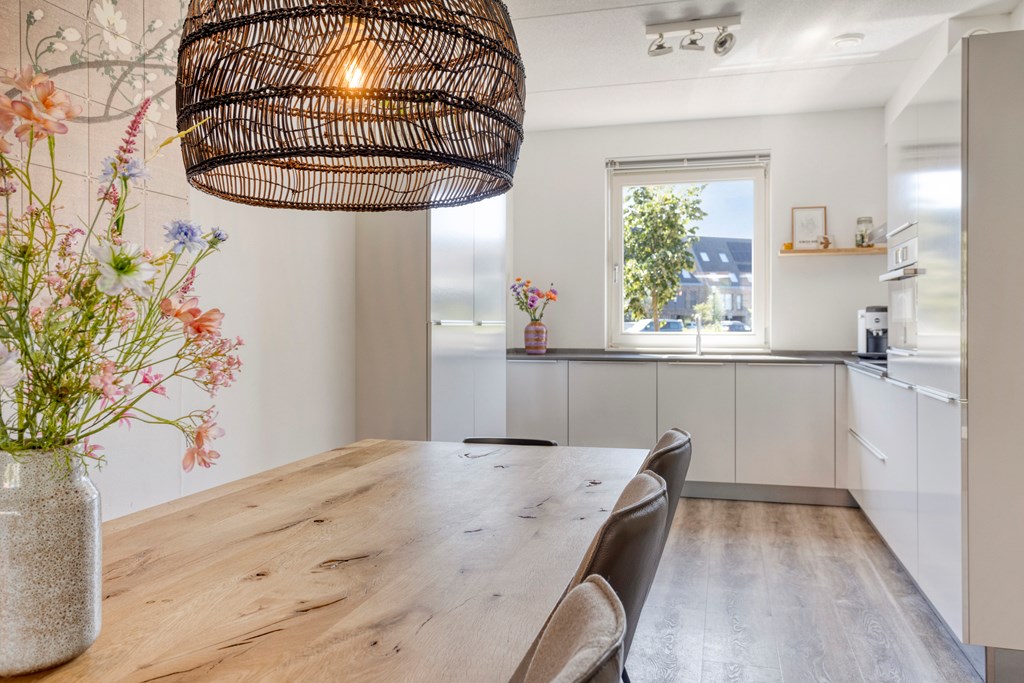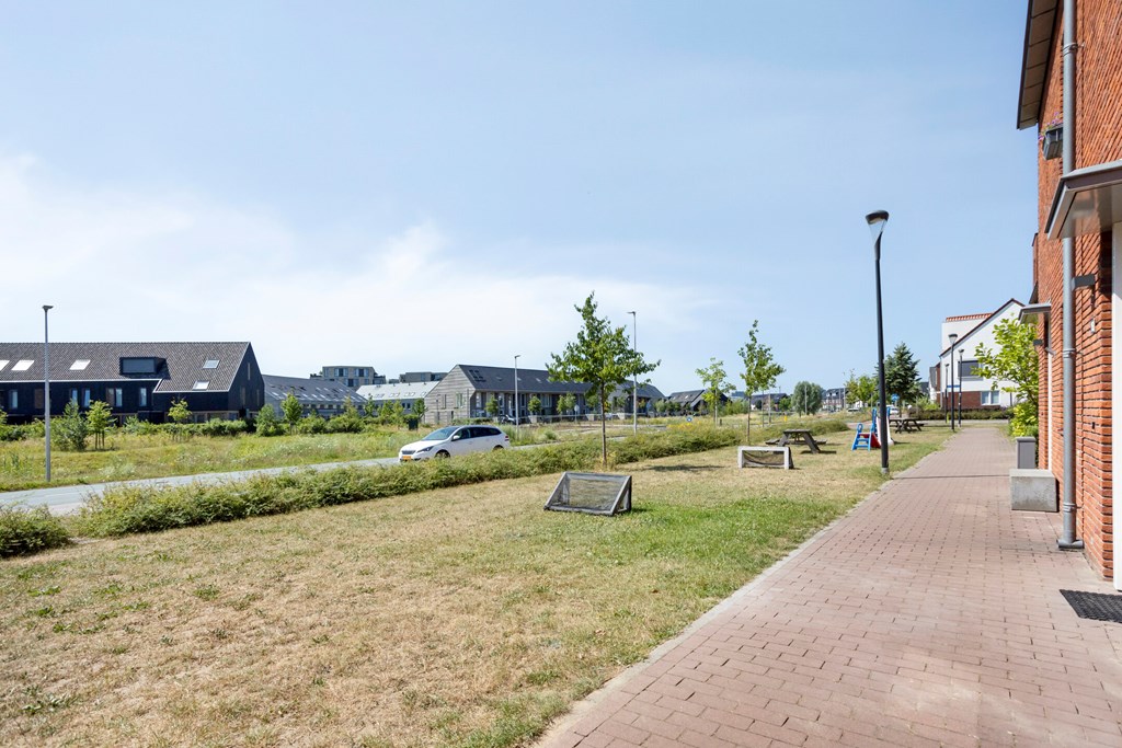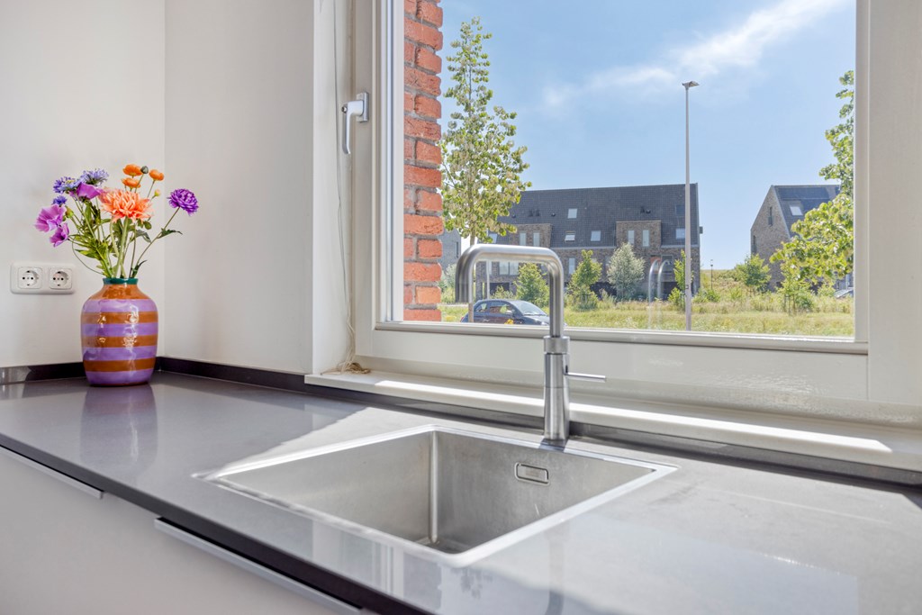 De woning is gelegen aan een groenstrookje. Via de voordeur bereik je de hal van de woning met toegang tot het moderne toilet, trapopgang naar de 1e verdieping en doorloop naar de woonkamer. Aan de voorzijde van de woning vind je de moderne open keuken met Bosch inbouwapparatuur en een Quooker. Vanuit de keuken heb je leuk uitzicht over de groenstrook voor de woning en daardoor ideaal zicht op eventueel spelende kinderen. Er is een mooie verbinding met de overige ruimte op de begane grond. Er is ruimte voor een grote eettafel en zithoek aan de achterzijde. Via de openslaande deuren bereik je de fijne achtertuin, daarover later meer!